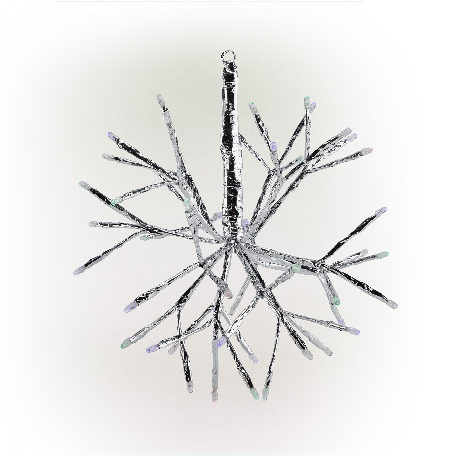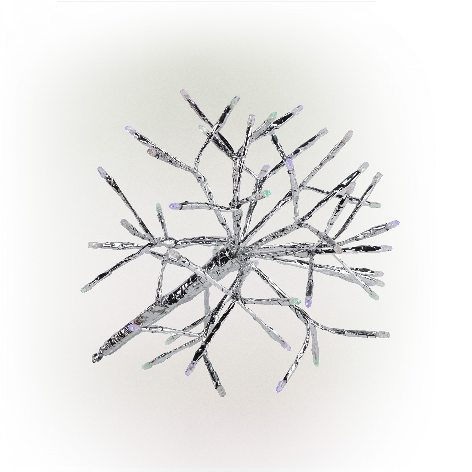 Create a scene out of a story book with these very bright, sparkling and traditional Snowflake ornaments. 48 LED lights illuminate the 3D body of the twig snowflake adding the perfect amount of luminosity to the ornament.