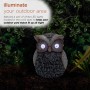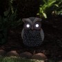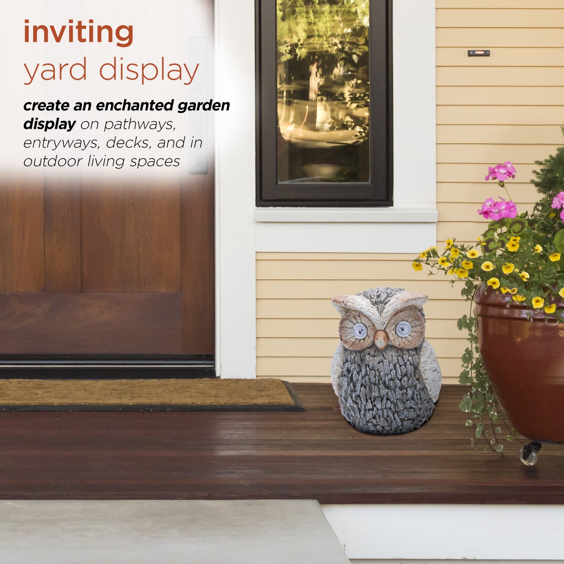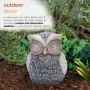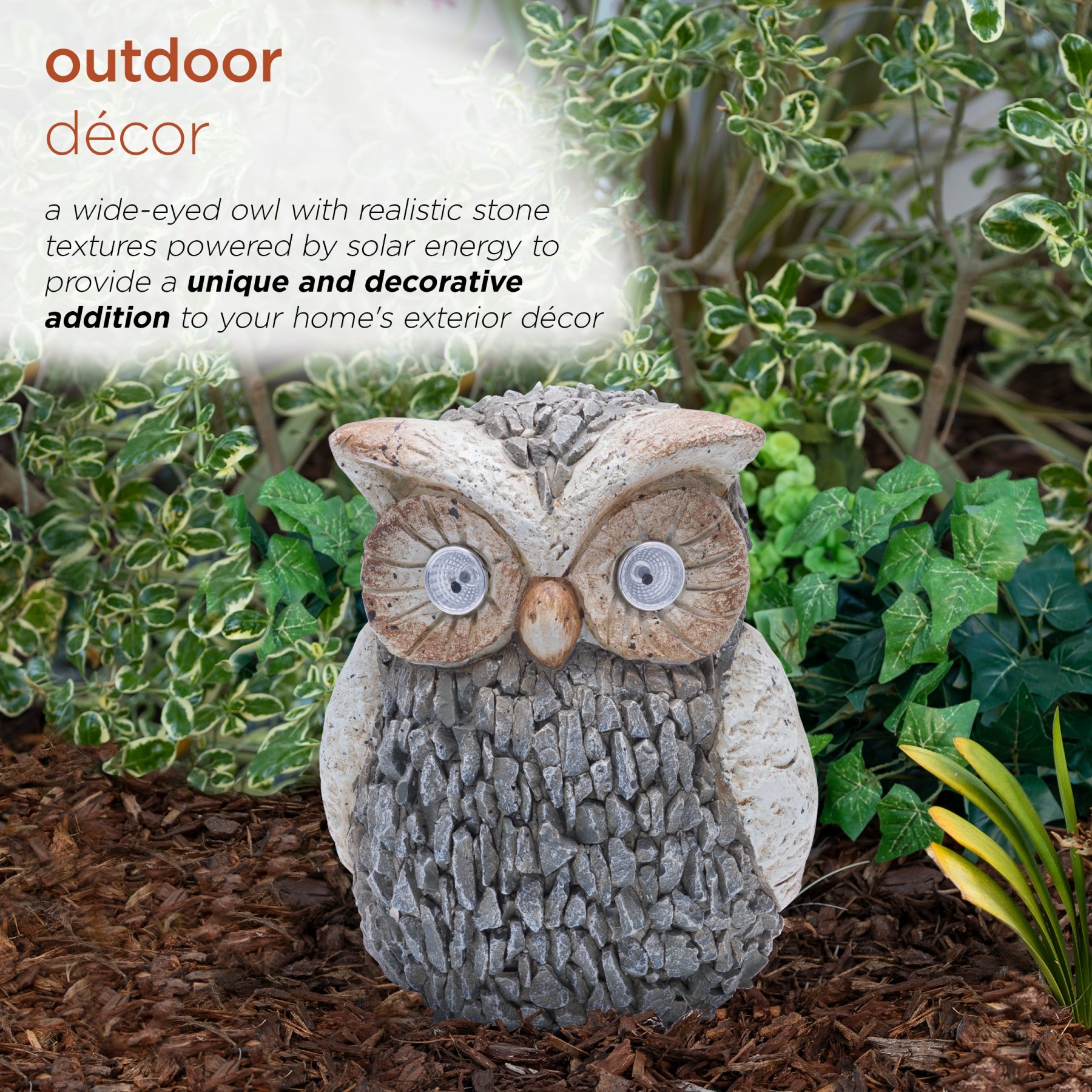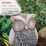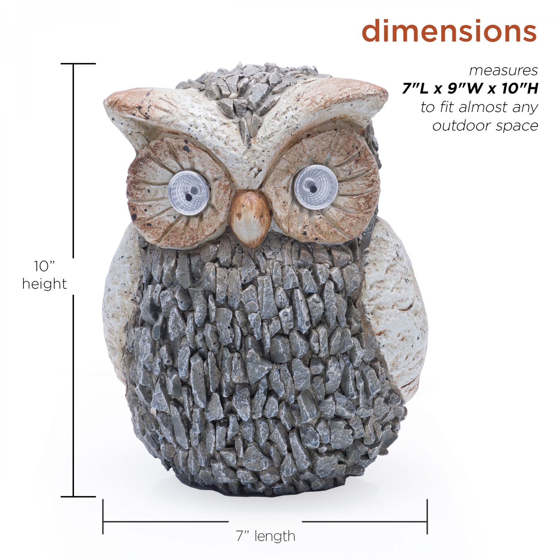 Solar-powered LED lights replace this charming Owl's eyes without losing the art effect, made from weather resistant materials this 10" tall Owl can with stand a variety of temperatures. Including a stone finish, this charming piece is great all year round.