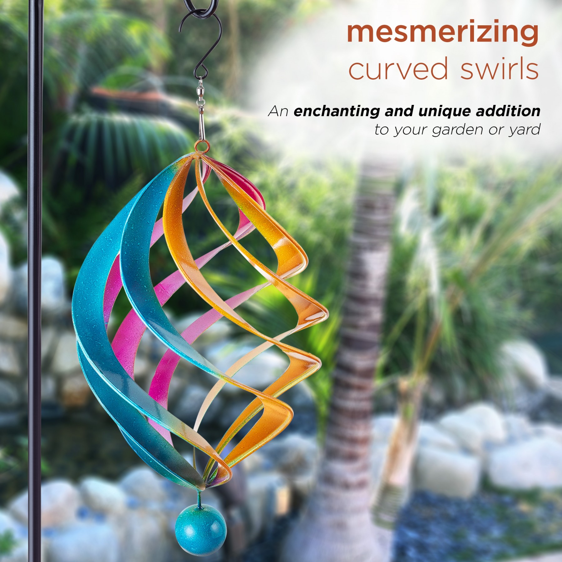 This colourful and eye-catching spinner features red, blue, orange, green, purple and yellow connected spirals. At the bottom, a ball pulls it all together. Standing 84" tall, this wind spinner is easy to install but sturdy enough to withstand a variety of weather conditions.