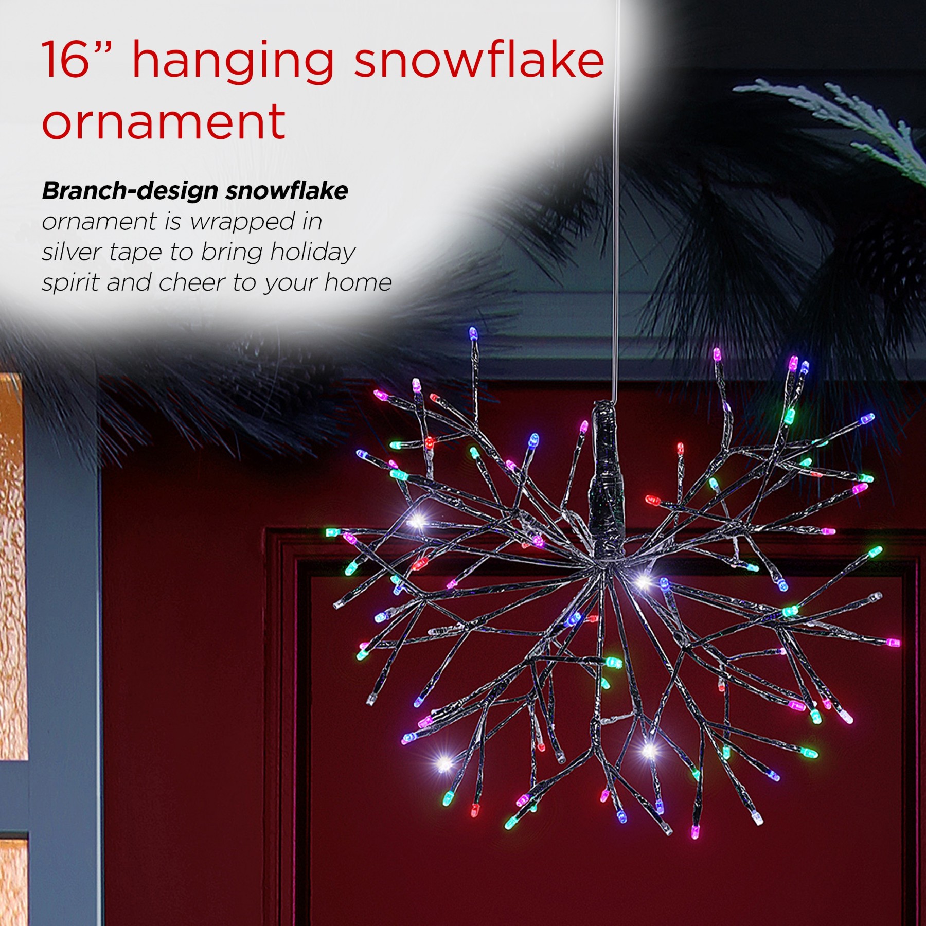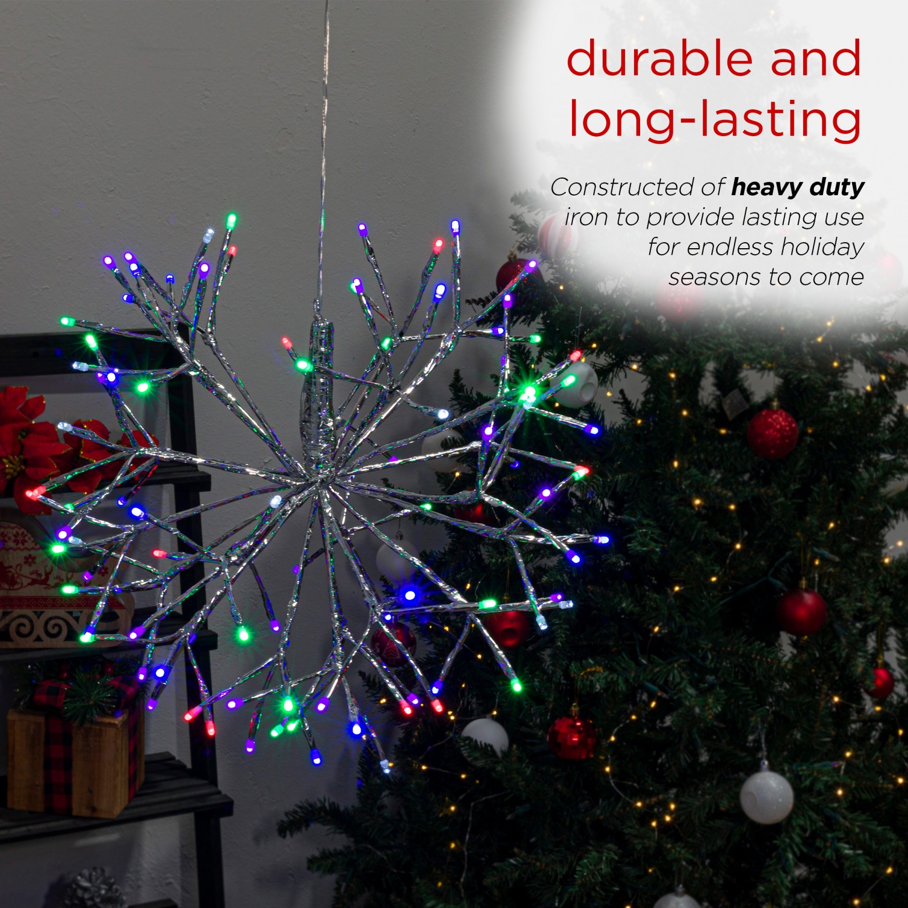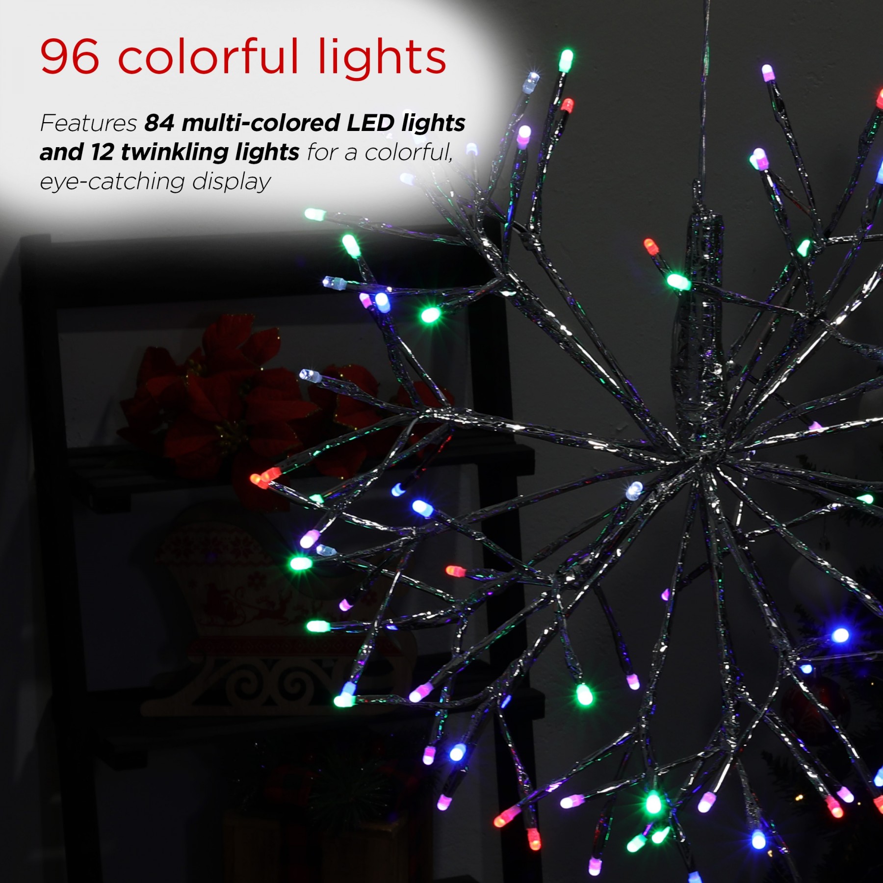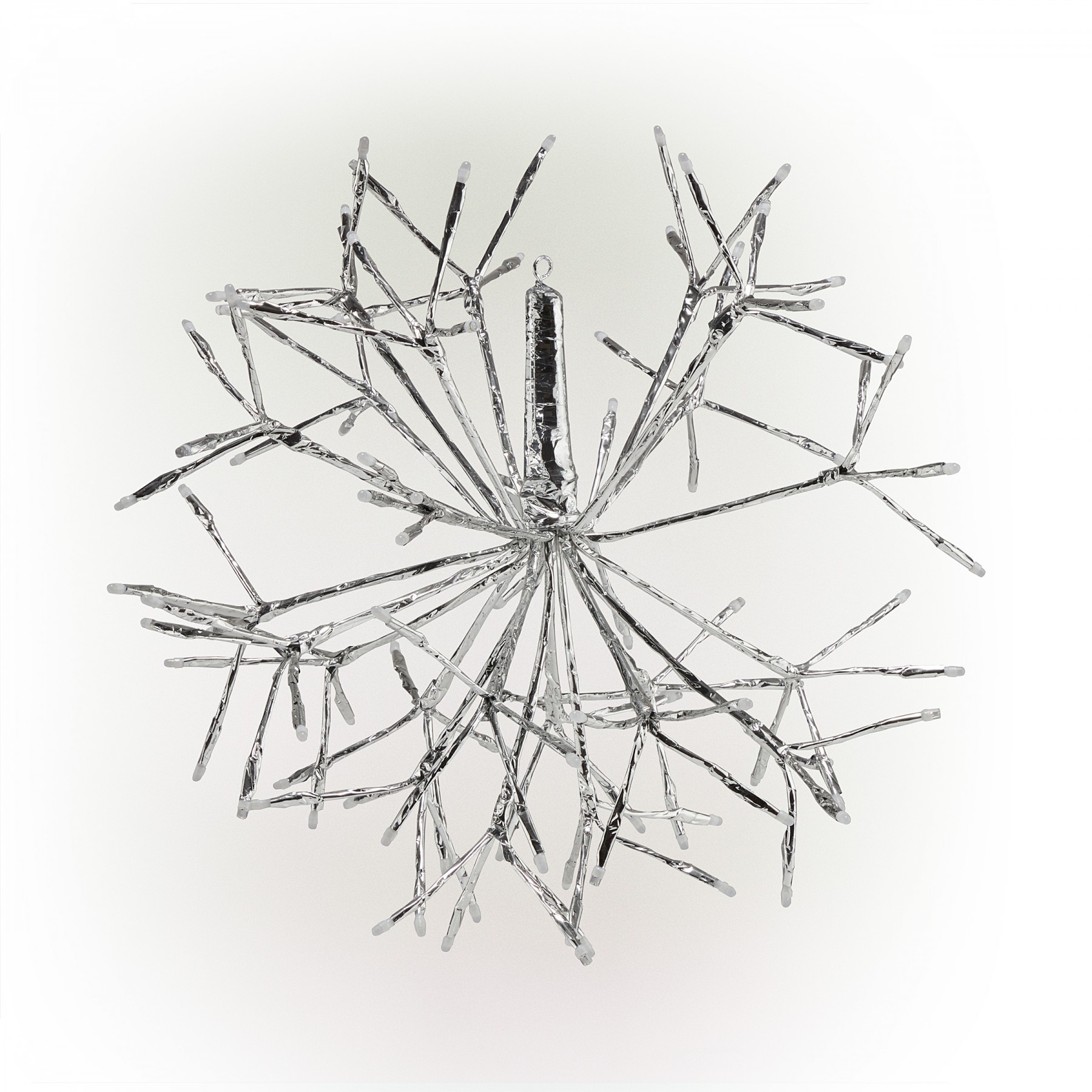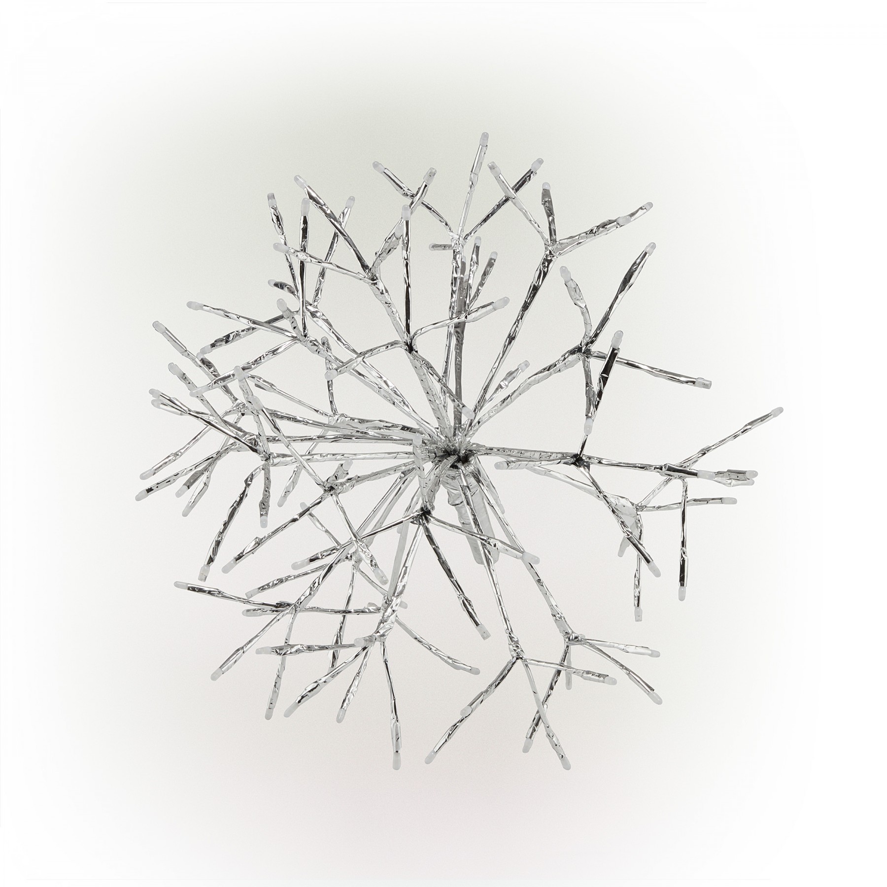 Decorate your home with Alpine's Silver Taped Bush Decor With Green LED Lights! This bush has a large build and eye-catching design perfect for the festive Christmas season and makes a great addition to enhance your indoor or outdoor scenery with its green LED lights. Easily setup this decor with its durable stake, planting it firmly into the ground. It features 140 warm white LED lights to brighten your home throughout winter.