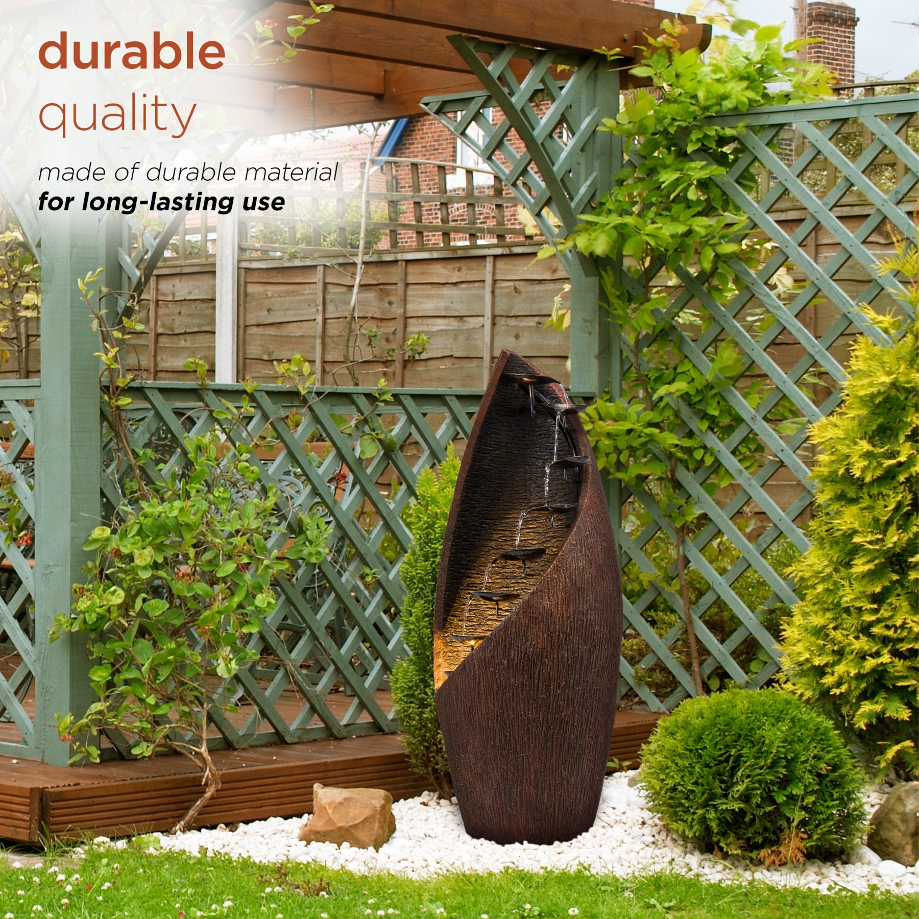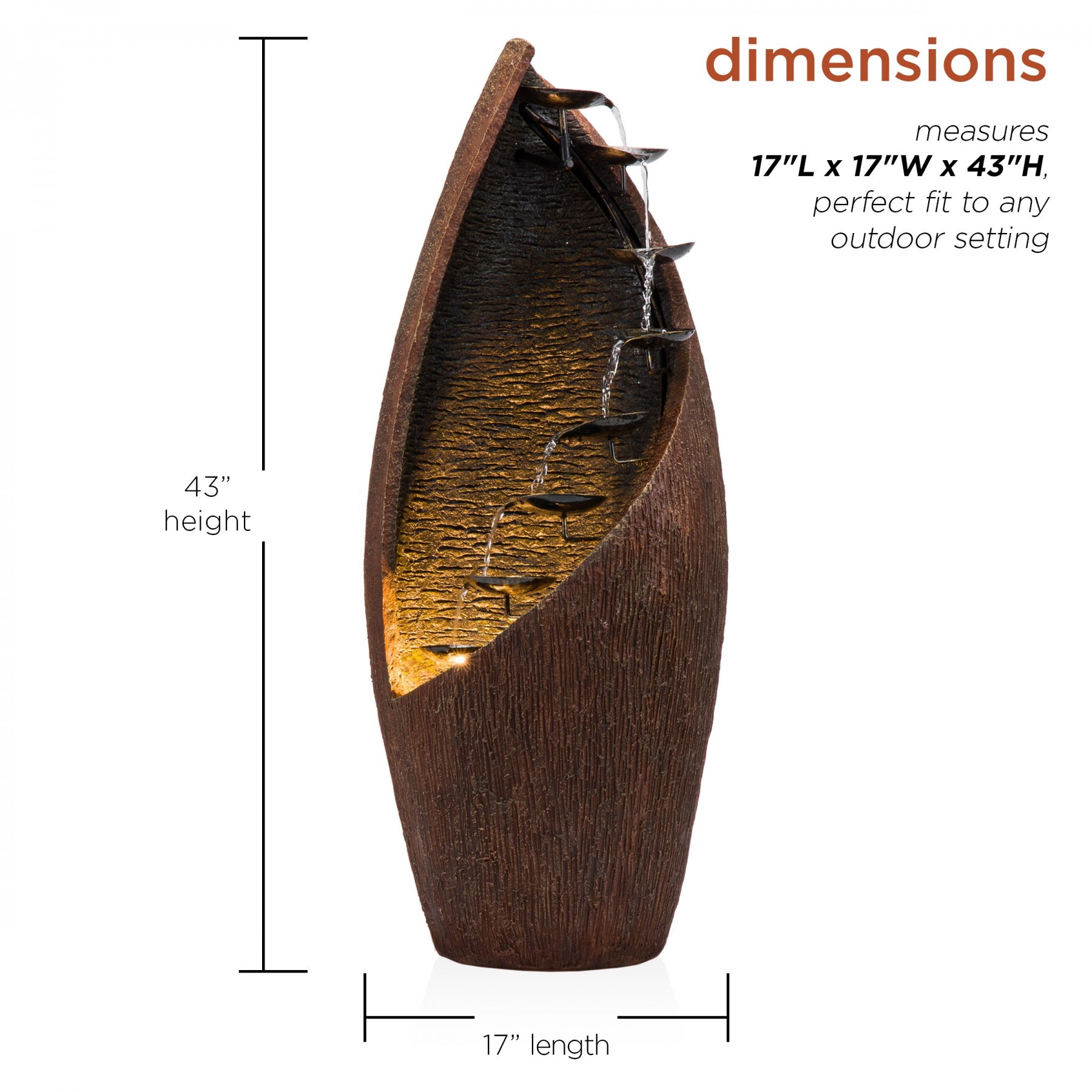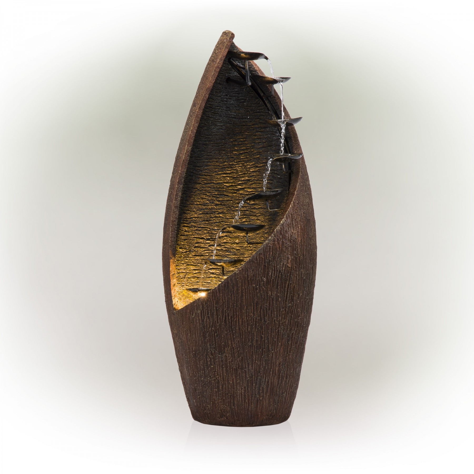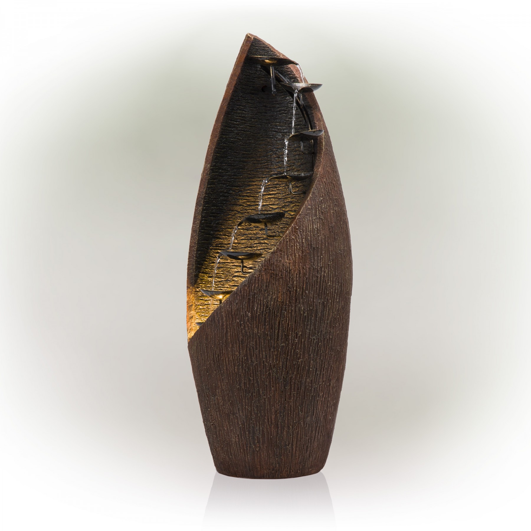 Featuring a classic and elegant earth tone design, this floor fountain creates a striking focal point wherever it is placed. Multiple tiers of water also create a soothing and relaxing sound similar to the sound of light rain. This handcrafted indoor water fountain, made of fiberglass, effectively combines tranquil functionality and elegant visuals.