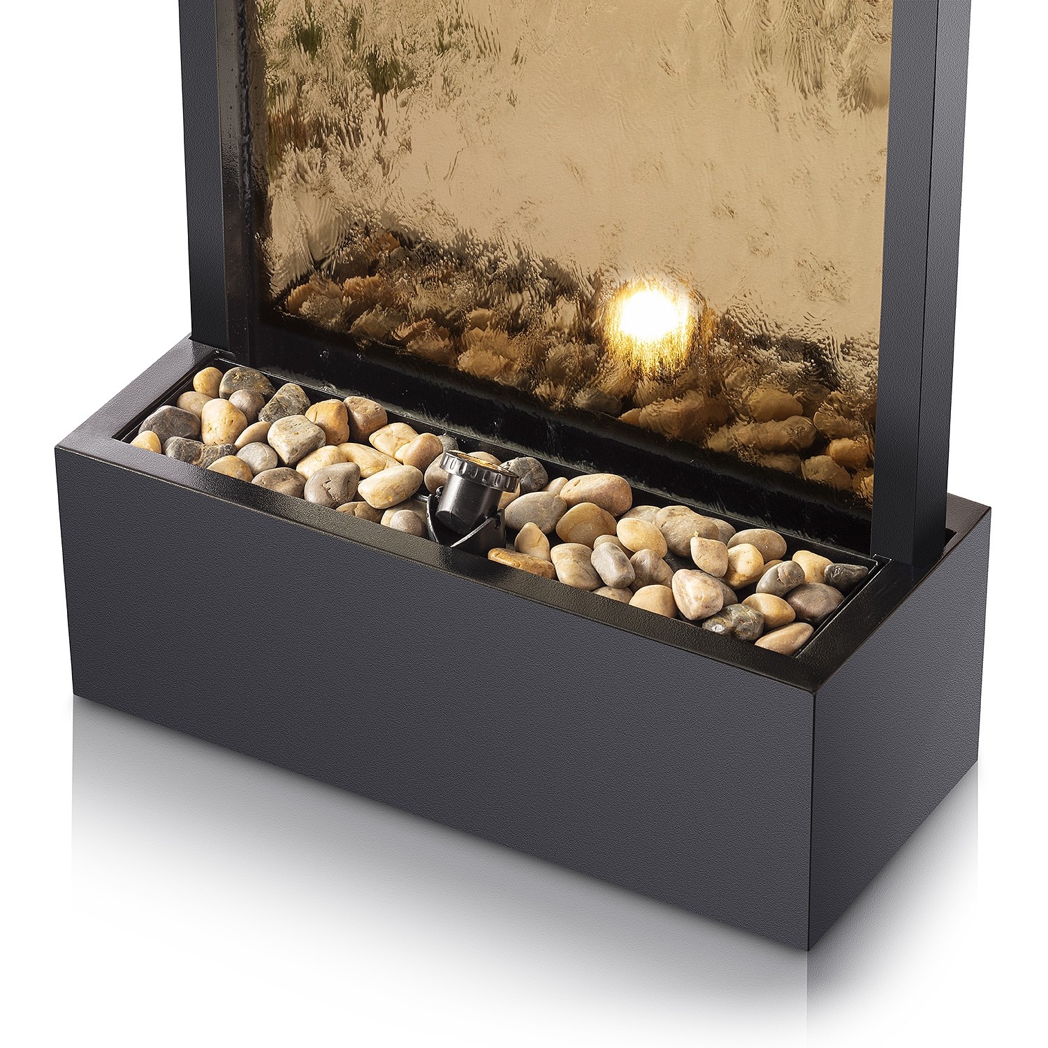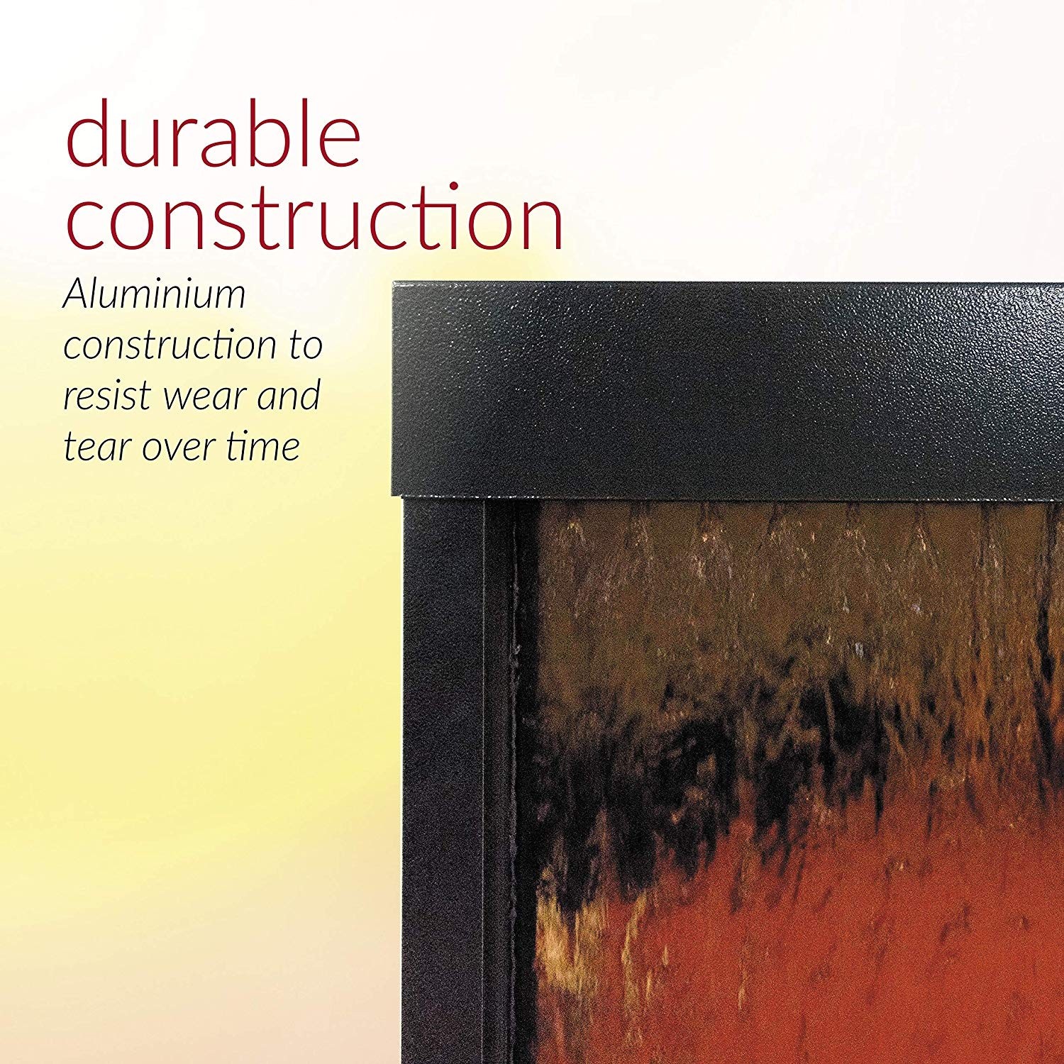 Available in different styles and colors, this artistic fountain blends contemporary shape with water flowing down glass panels. The water wall is made of stainless steel and beautifully finished with durable powder coating. In the garden, the basin can be buried to create the effect that the waterfall is growing among the flowers. In addition, this fountain is guaranteed safe for both outdoor and indoor use. It also comes with a 1 Year Limited Manufacturer's Warranty.