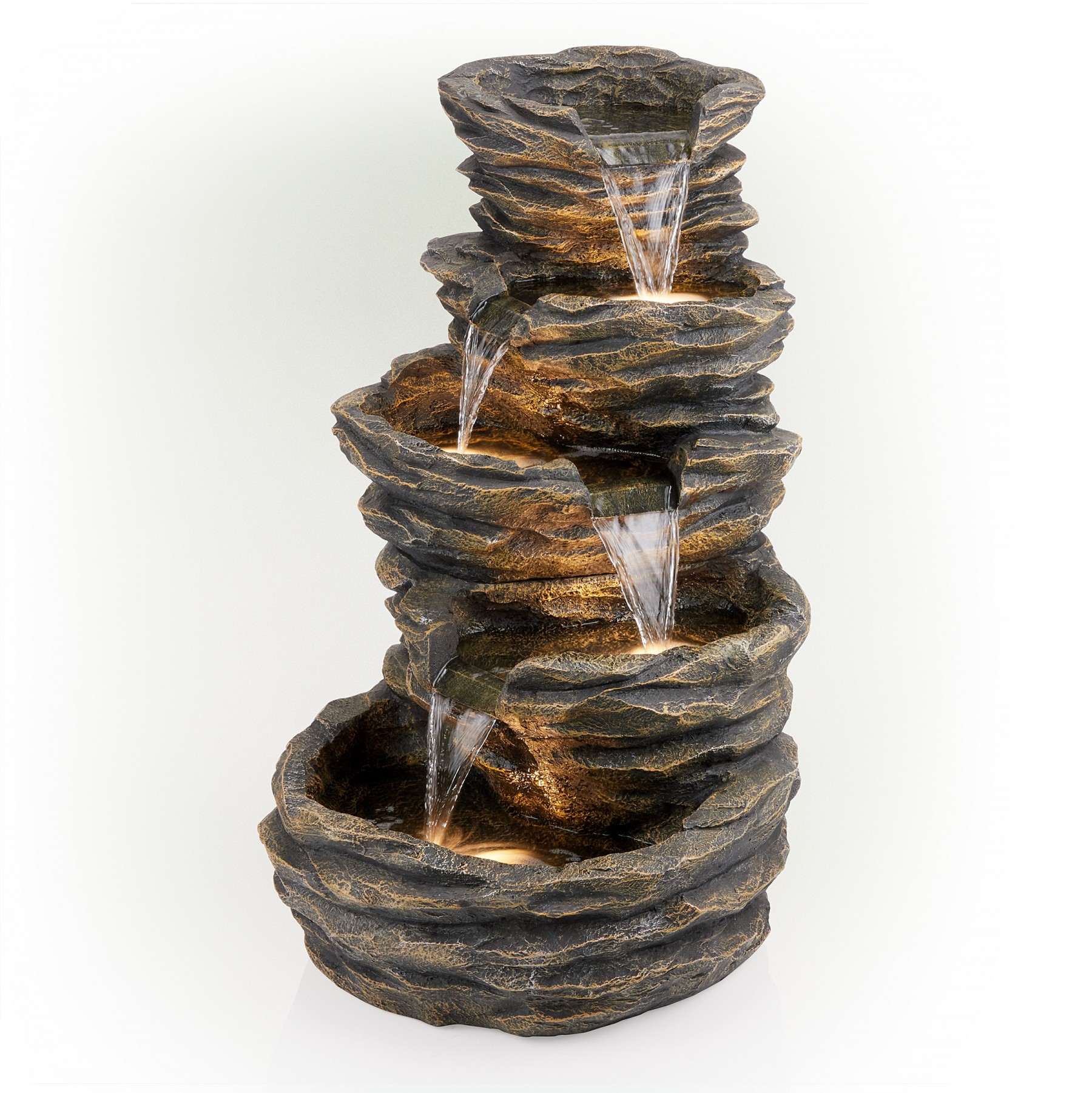 Alpine newest line of fiberglass fountains utilizes strong geometric designs for clean, crisp appeal. These generously sized fountains have the look of natural stone with the strength and durability of Fiberglass. Multiple Streams of water flow to create a relaxing and meditative atmosphere. They can be placed indoors or out.