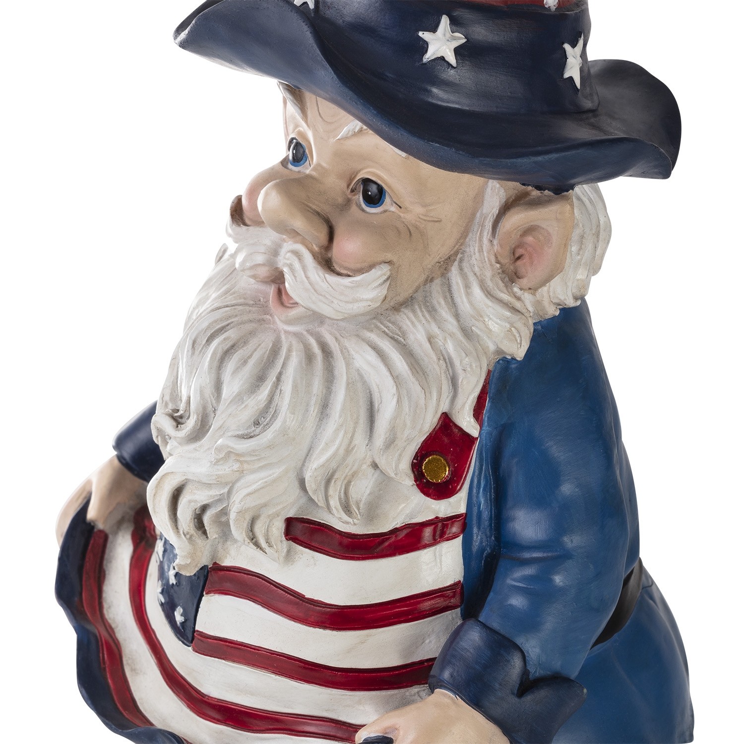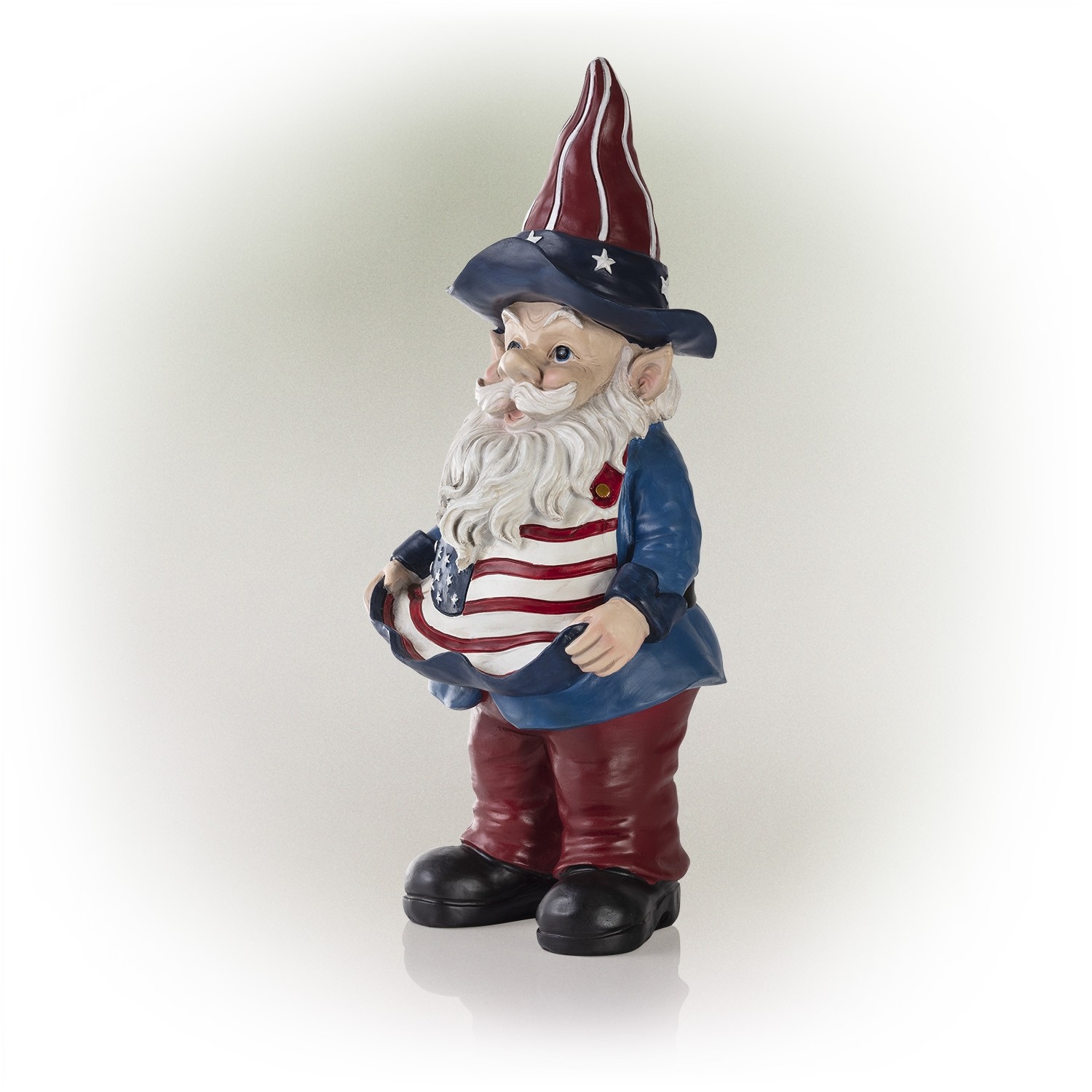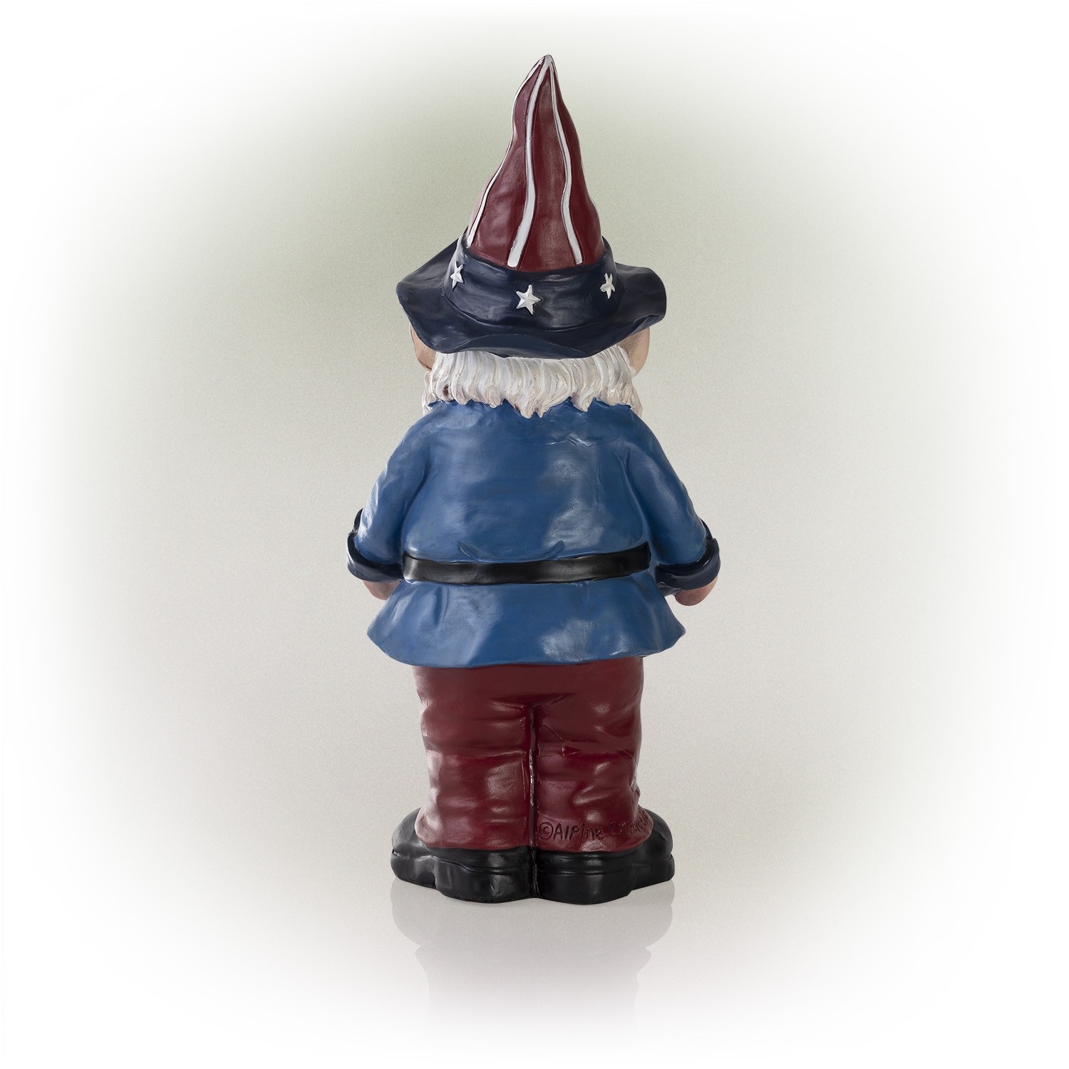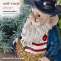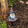 Part of the Americana collection from Alpine, this patriotic gnome is there to give a friendly snack to a passing bird. Proudly dressed in the Red, White and Blue he's ready for duty.