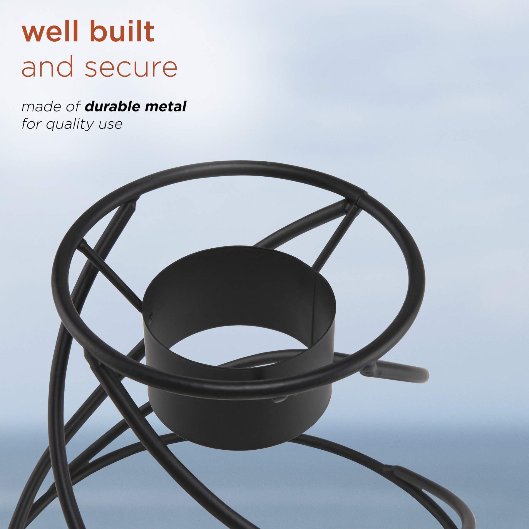 Support and show off your outdoor and indoor decor with the Alpine Corporation 8" Tall Indoor/Outdoor Spiraling Metal Gazing Globe Display Stand. This durably crafted stand is a perfect decoration for any occasion. Made of sturdy metal, this stand is made to provide years of quality use while displaying your favorite gazing globe in a sleek, modern way. The glass orb display stand can be cleaned easily to allow for long-lasting use in your courtyard or garden. Whether you use this as a decoration in your garden, on the patio, on your deck, near the entrance way in front of your home or anywhere you desire in your living room or elsewhere, this globe stand is sure to bring an inviting atmosphere when paired with our gazing globes, all while leaving a long-lasting impression! Display your gazing globe with this 8" high stand, and add additional stands in varying heights to create a stunning visual display and add depth to your flowerbeds, outdoor area or inside your home. The Alpine Corporation Gazing Globe Stand measures 9"L x 9"W x 8"H to fit almost any indoor/outdoor area and includes a one-year manufacturer's warranty from date of purchase.