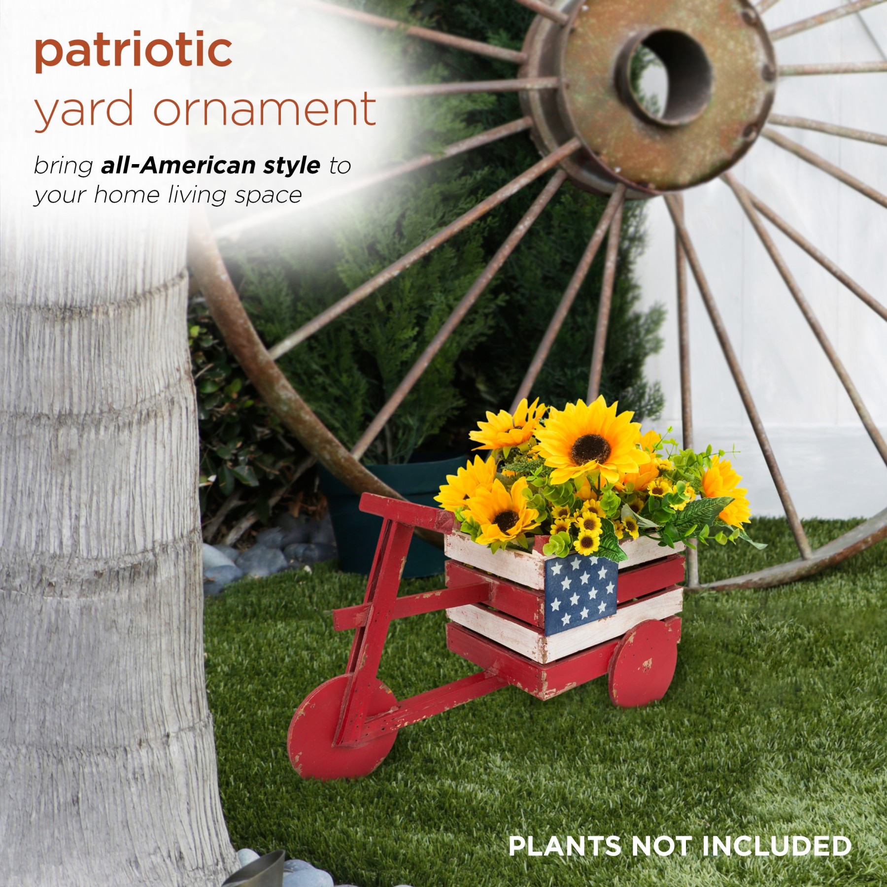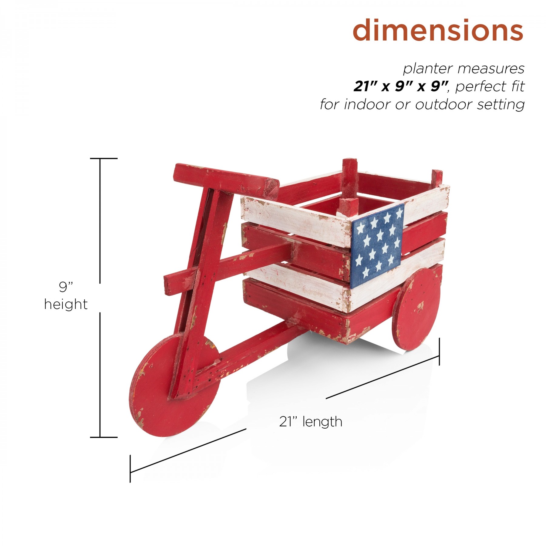 Celebrate the Red, White and Blue, in your garden with this Star Spangled Tricycle planter from Alpine. Made from wood and hand painted with a rustic weathered look.