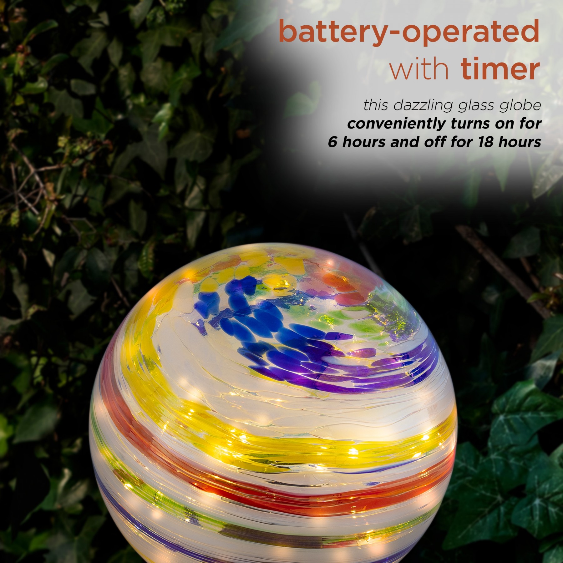 With a classic design, Alpine's Colorful Gazing Globe with LED Lights features a marble print with an assortment of colors! Ideal for a table-top or garden décor!