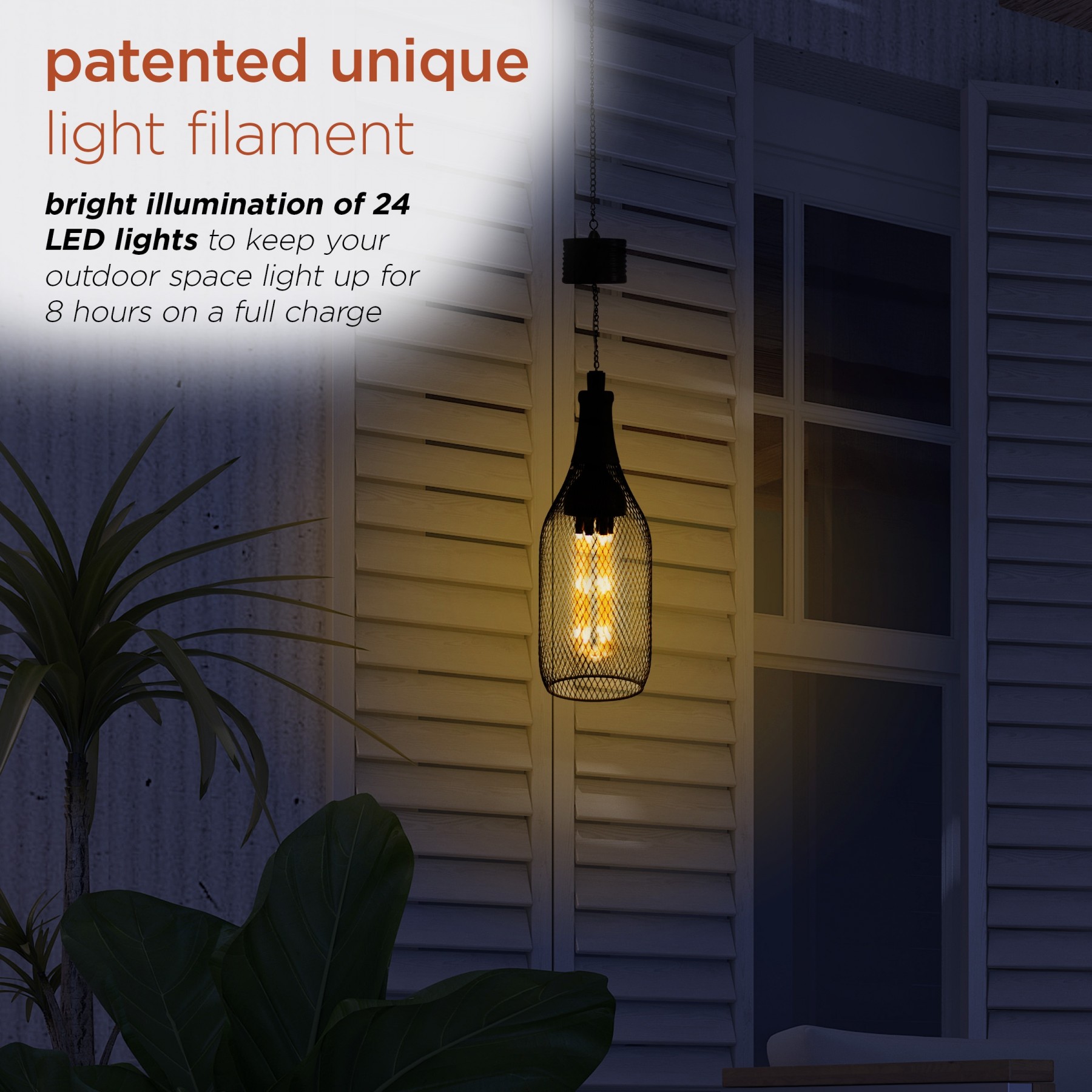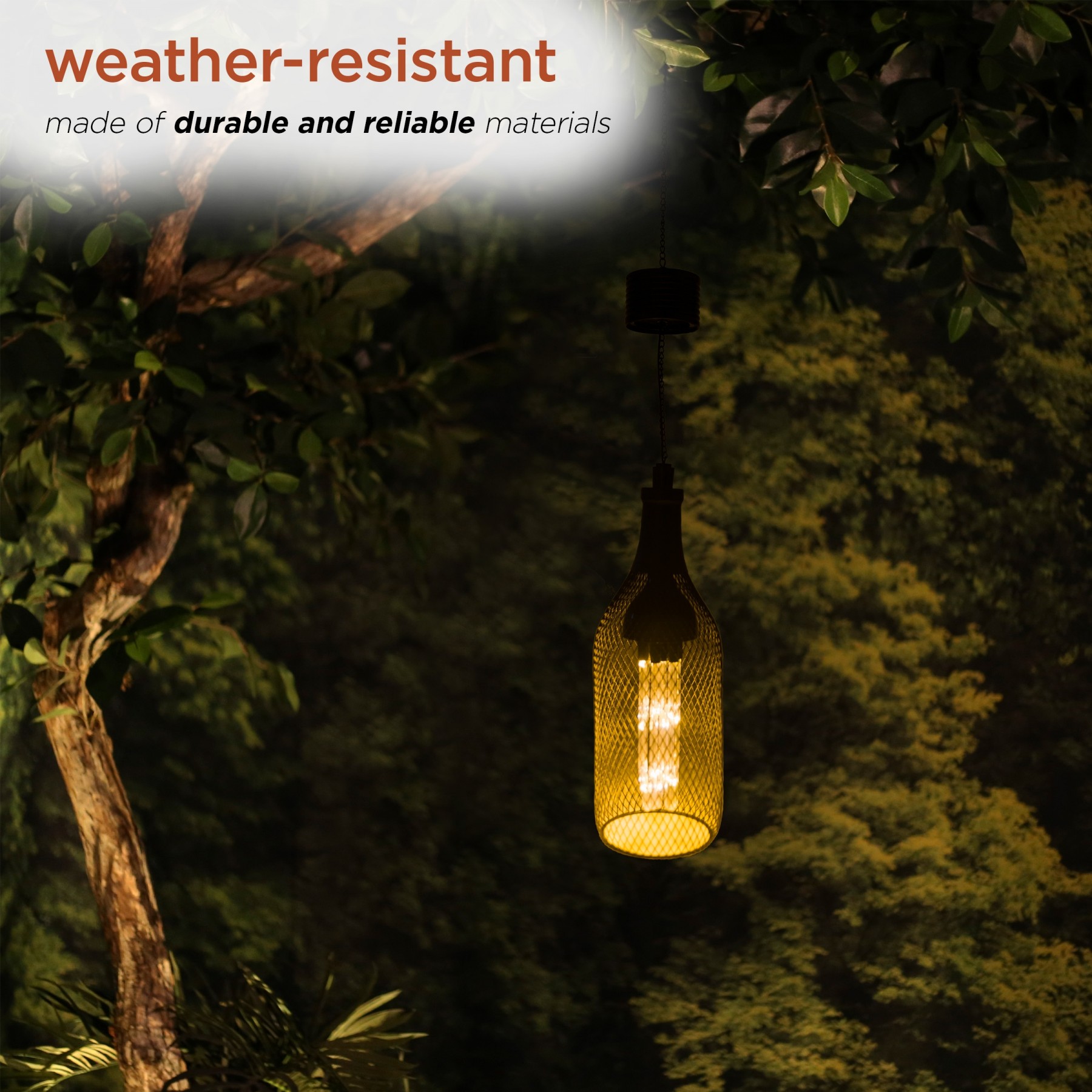Delicate look and industrial design best describe this Hanging Solar Light fixture. Can be gracefully placed in any outdoor living areas as it is made from durable, weather resistant materials. Charges by day, and illuminates by night.