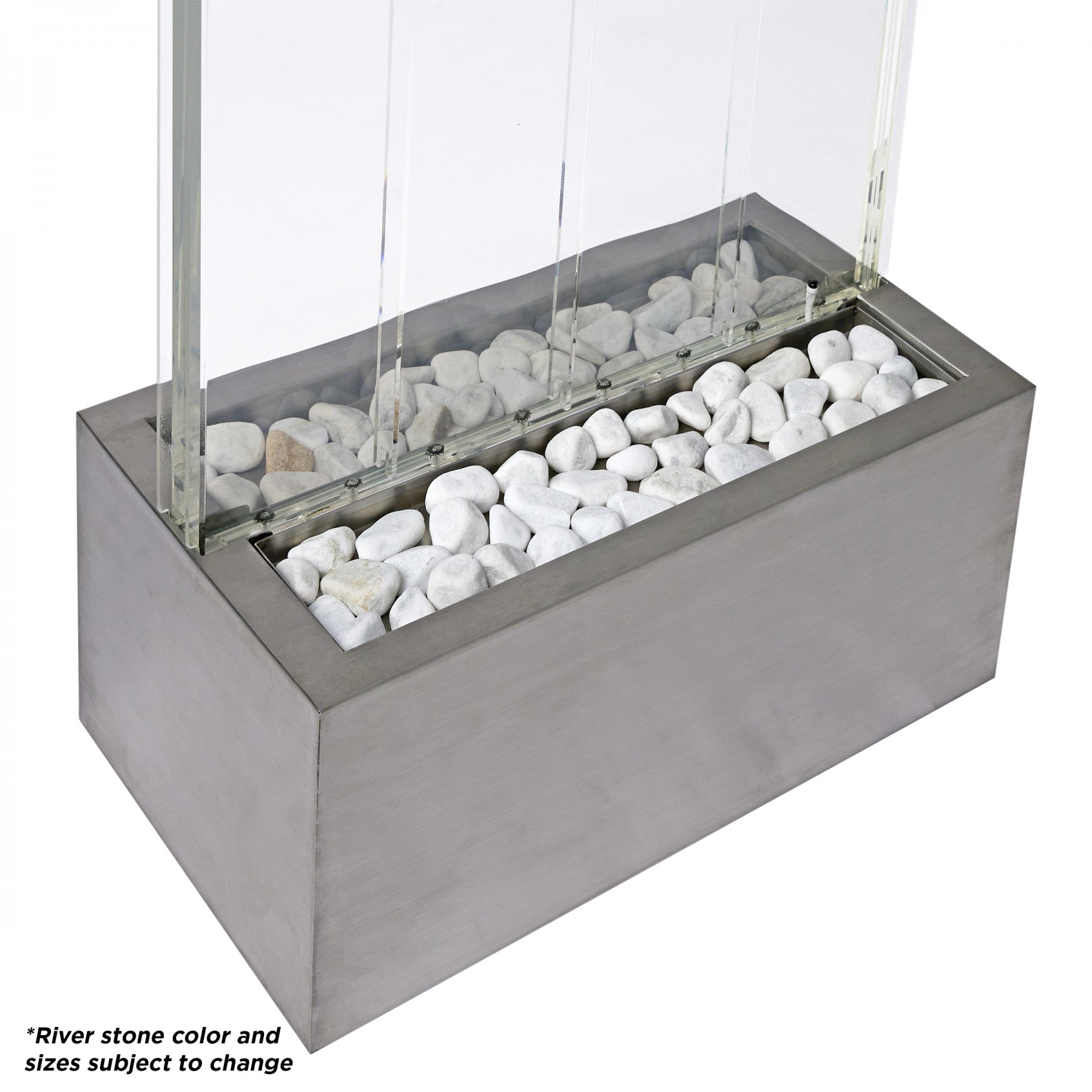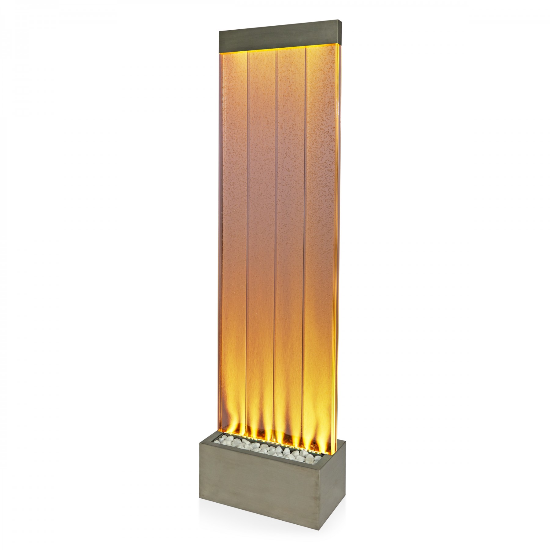 Bring tranquility to your home with the Alpine Corporation 72"H Bubble Wall Fountain with Color-Changing LED Lights and Remote. This decorative bubble wall features water cascading down a clear bubble-filled panel into a stone-filled silver base with an interior pump that keeps the water flowing - just plug it in! The convenient remote allows you to select from 16 color options, 6 lighting options (speed/brightness/flash/strobe/fade/smooth) and turn it on and off. It is great for adding a calming ambiance in your entryway, living room, office and more. The tranquil sounds of water gently cascading down the bubble-filled wall creates a calm and relaxing atmosphere while blocking out other noises. The modern style will complement your existing decor. The durable stainless steel base and clear acrylic panel provide long-lasting use. To start using the fountain, simply plug in the 6-ft. cord, fill with water, and turn the switch on to start the calming water flow. This free-standing fountain measures 20"L x 11"W x 72"H to make a statement indoors and it includes a one year manufacturer's warranty from date of purchase.