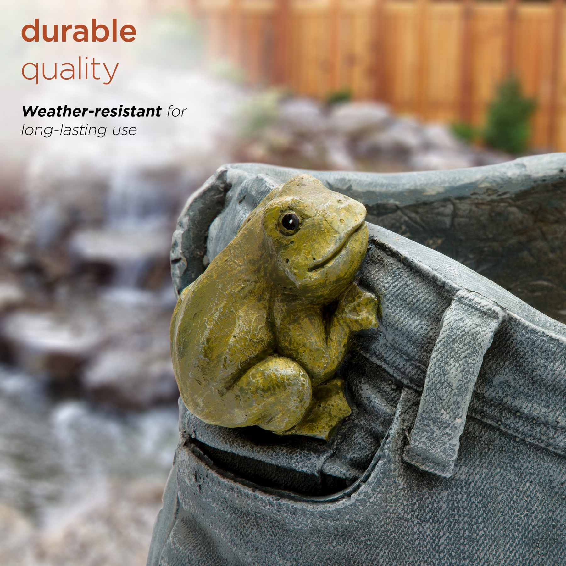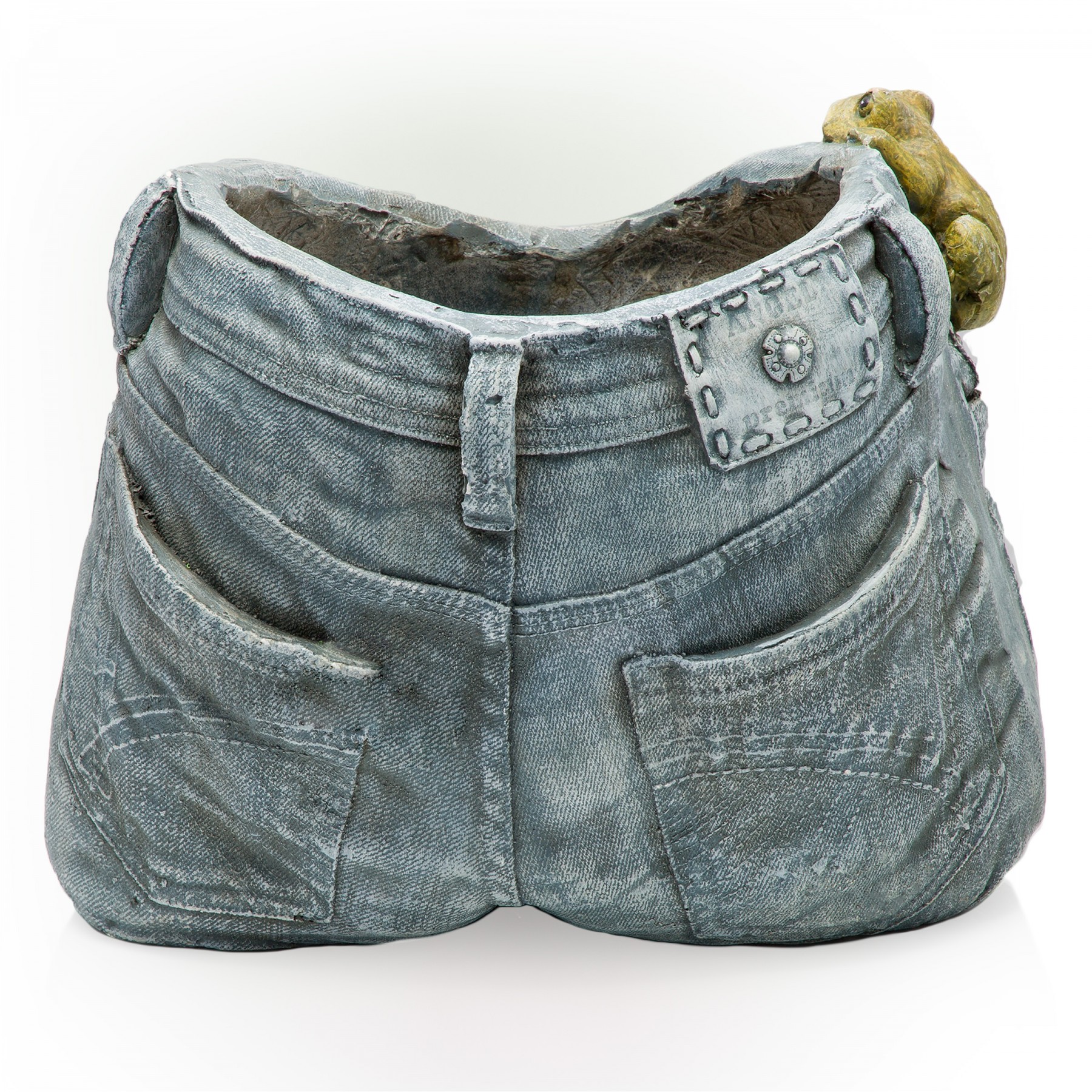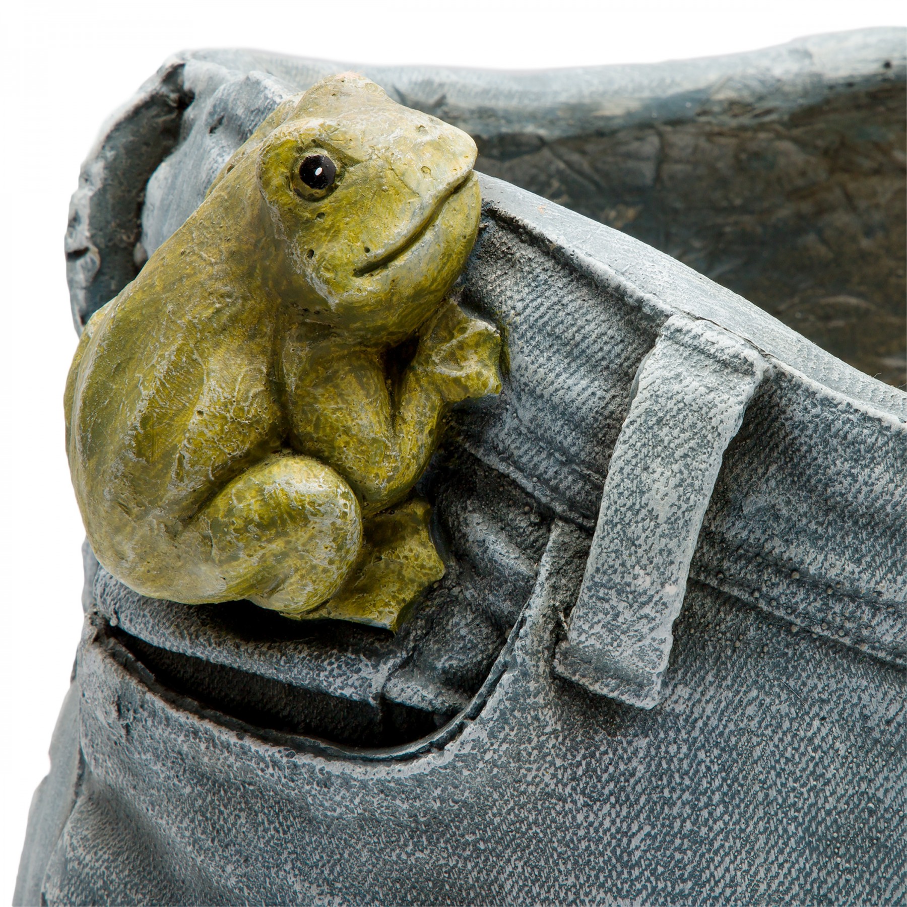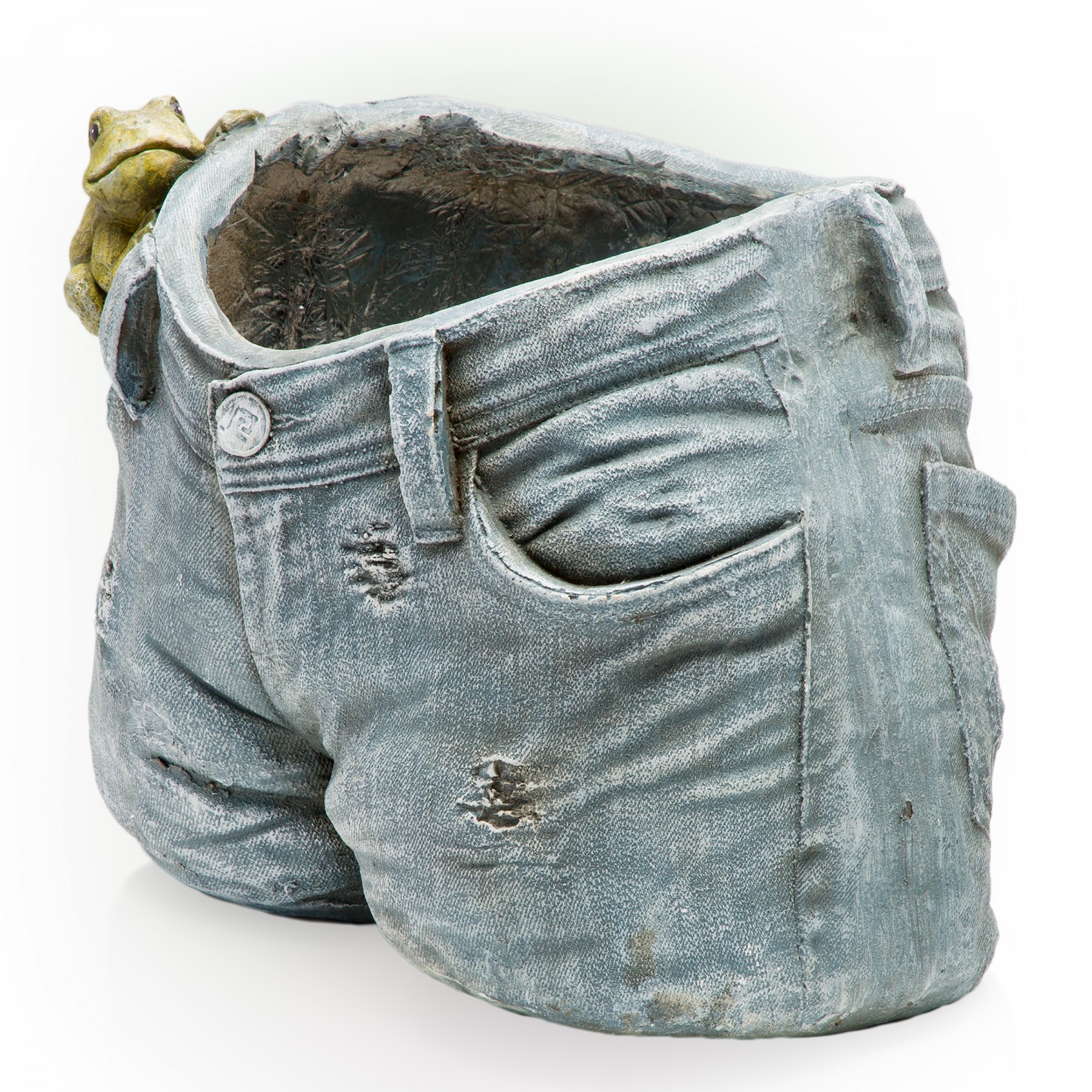 Create an inviting walkway or enhance your garden’s natural beauty by adding this 10" tall Indoor/Outdoor Denim Shorts with Frog Shaped Planter and Yard Decoration from Alpine Corporation. This weathered finish planter in the shape of a pair of blue jean shorts with an adorable clinging frog will provide a unique and rustic addition to your indoor or outdoor home décor. Skillfully crafted from weather-resistant and resilient magnesia, the planter has a weathered finish. This durable flower planter will provide long-lasting quality use in your garden or home's entryway. Due to its versatile functions, you can include this playful piece along your home’s pathway or in your flowerbeds as a decorative accent to display your lush, green plants and exotic flowers. It can also be used in your living room, foyer, or family room as an accent piece. Add one or multiple planters with your favorite plants and flowers to add a fun yard display to your garden or courtyard. The worn-in finish and life-like details of the shorts and frog add visual interest to home interiors and exteriors. The compact planter measures 14"L x 11"W x 10"H to fit almost any indoor or outdoor area, and includes a one year manufacturer's warranty from date of purchase.