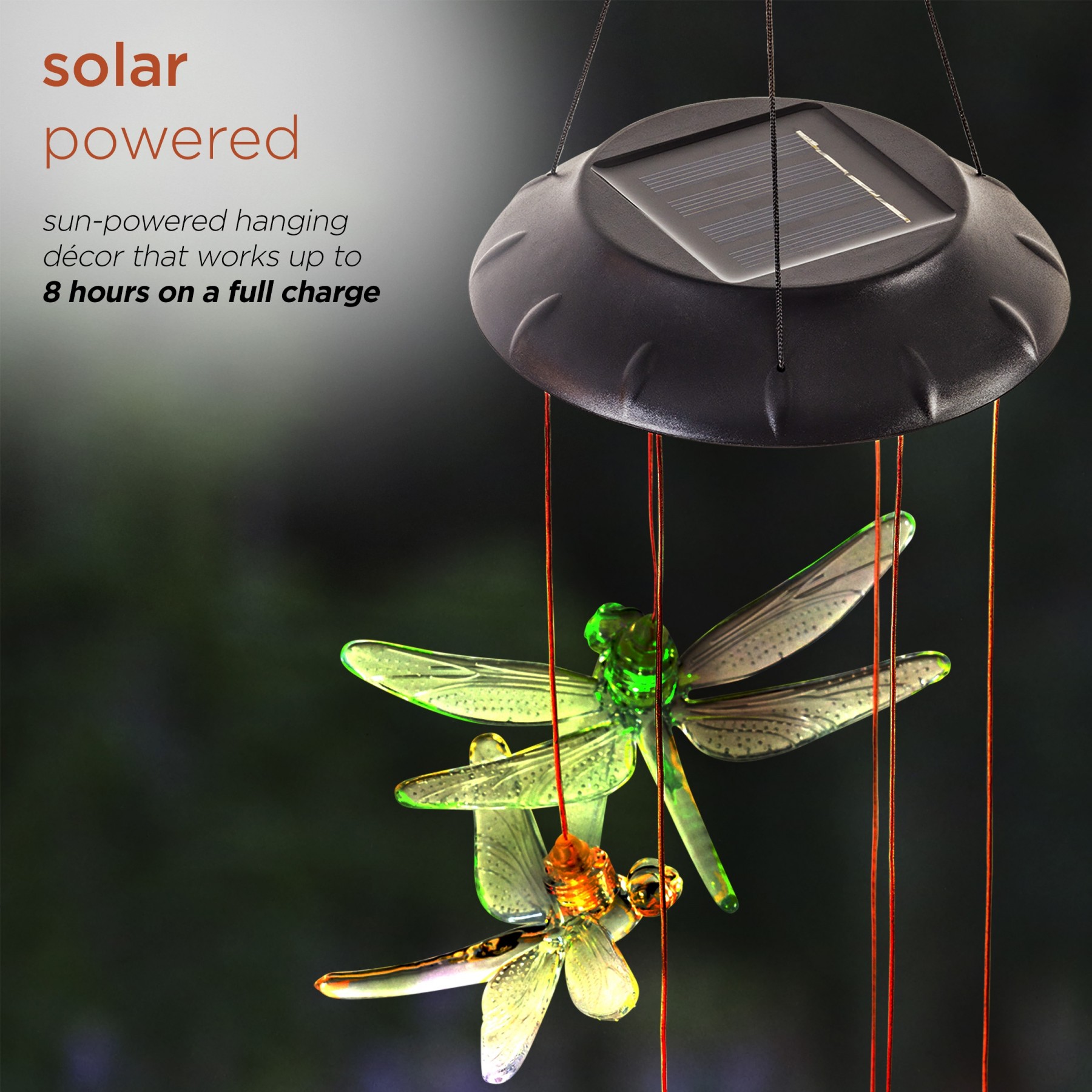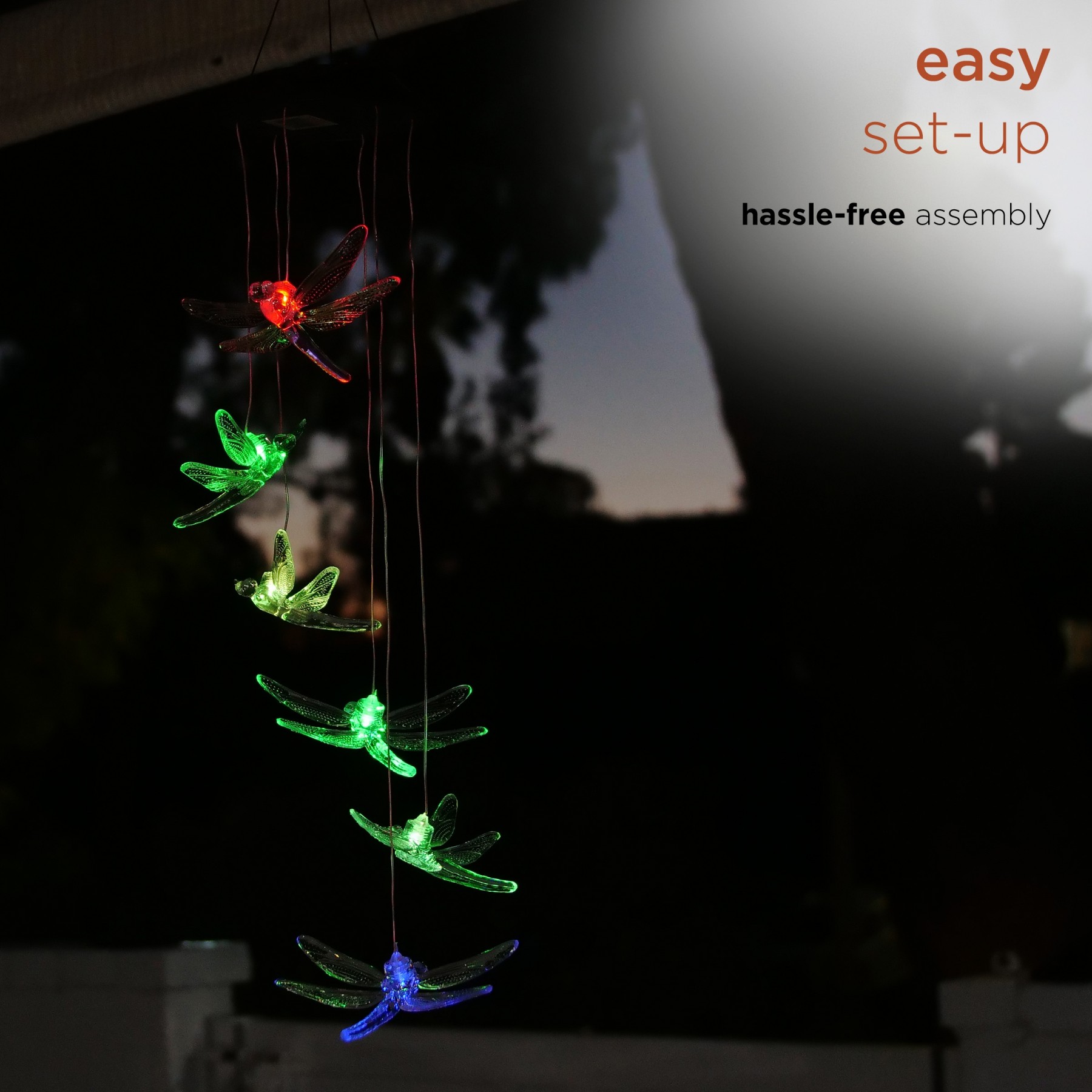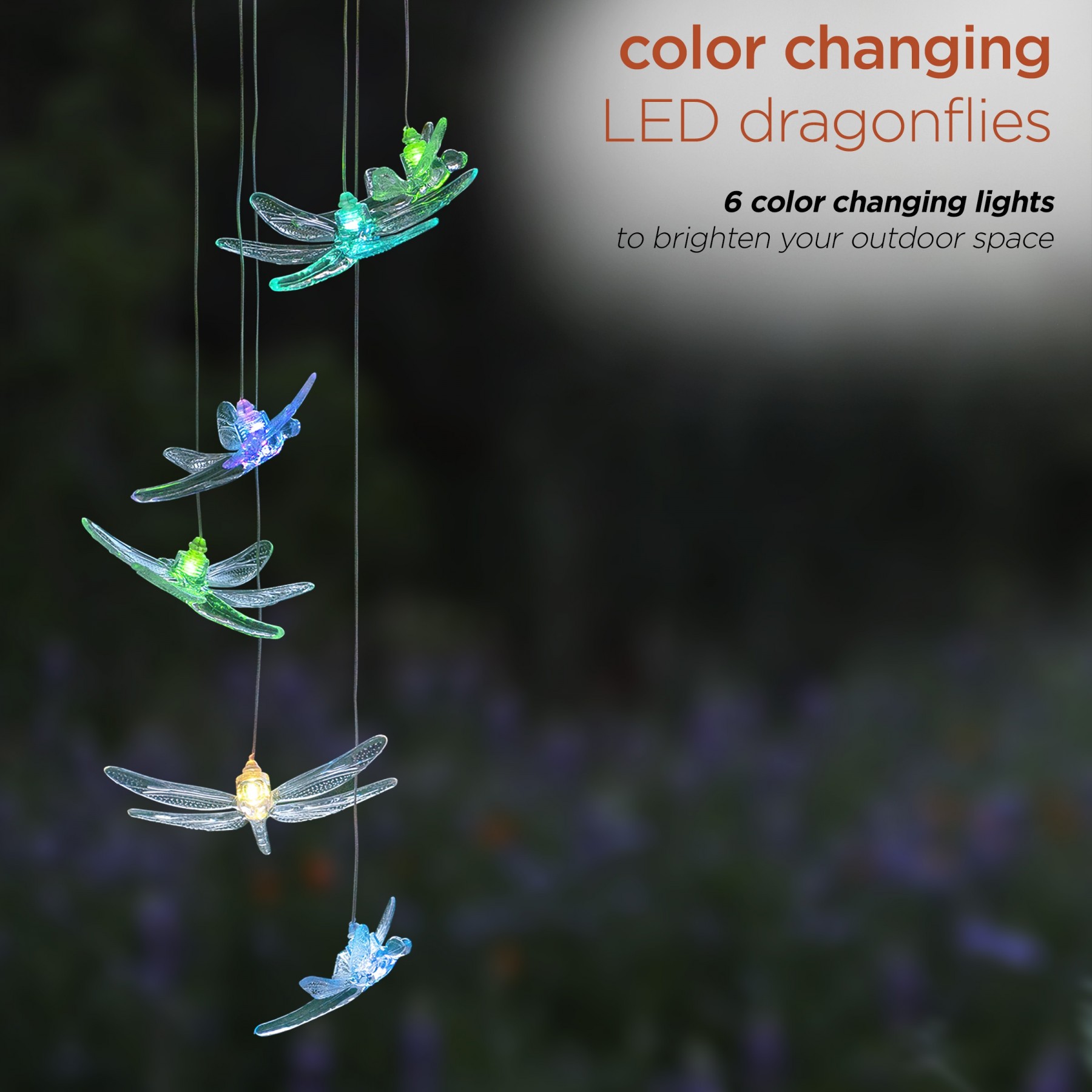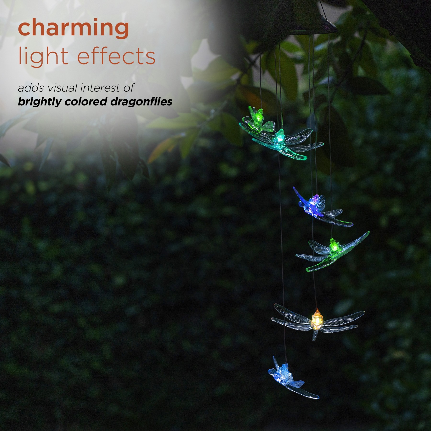 Alpine's Solar Windchime with multicolored LED's would be a great addition to any entryway. Let the wind sway these Dragonflies and relax with the calming chime.