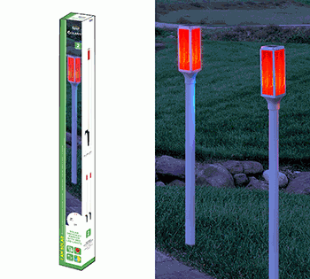 The Alpine Corporation 43"H Driveway Markers feature bright red lighted toppers to illuminate your front lawn, sidewalk, driveway, or pathway. The two driveway markers feature solar-powered LEDs that light up your landscaping at night for up to 6-8 hours, and the photocell panels automatically turn the lights on and off. The durable white plastic stake enclosures and LED lights provide long-lasting use year after year. Simply plant the stakes into the ground for quick and easy set up. Use multiple stake sets to light up walking paths safely and conveniently (sold separately). The Alpine Corporation Driveway Markers measure 2"L x 2"W x 43"H and include a one-year manufacturer's warranty from date of purchase.