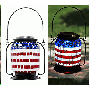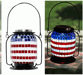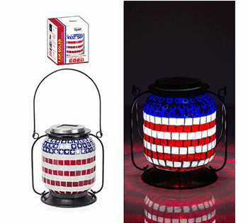 Add patriotic style to your outdoor area with the 7" Tall Hanging Solar Powered Outdoor Patriotic Lantern with LED Lights from Alpine Corporation. This lighted outdoor decor piece features cool white LED lights powered by solar energy to offer your guests a warm welcome. The cool white LED lights are encased in this patriotic lantern and charge during the day to keep your lantern illuminated for up to 8 hours of battery life. With a durable metal exterior, the yard art is made tough for outdoor use and is weather-resistant for long-lasting, quality use in your front yard or backyard or along your sidewalk. Add one or multiple lanterns to create an enchanted garden display. The outdoor lamp is perfect for display on pathways, entryways, courtyards, and outdoor living spaces. For hassle-free installation, the 7" Hanging Solar Powered Lantern comes with everything needed to install it, including a chain and mounting hook. The decorative garden decor measures 7"L x 5"W x 7"H and 12" with included chain hanger to fit almost any outdoor space, and includes a one-year manufacturer's warranty from date of purchase.